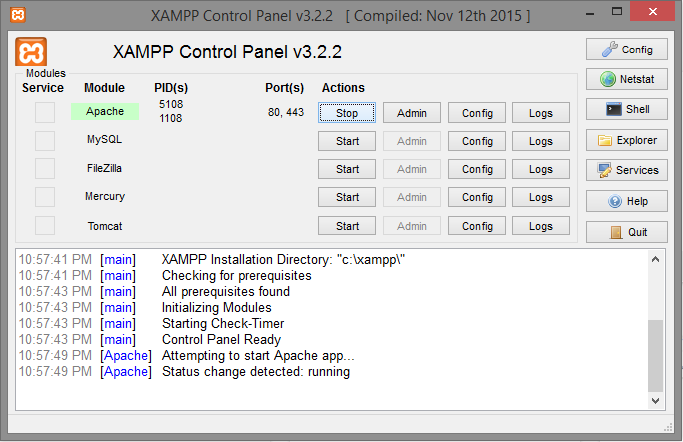 Jika Apache tidak di Start maka file php kita tidak akan bisa dijalankan atau diakses di browser.