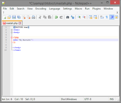 Buat terlebih dahulu program php anda. Pembuatan nya bisa dengan menggunakan Notepad bawaan Windows, Notepad++,Sublime Text dan lain lain