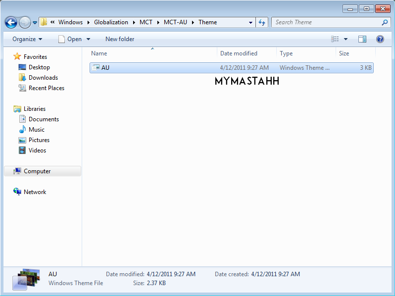 Klik 2 kali pada file AU, maka theme tersebut secara otomatis sudah terpasang di Personalize kita