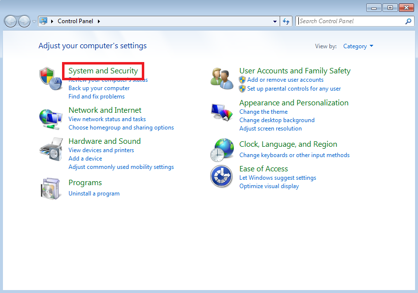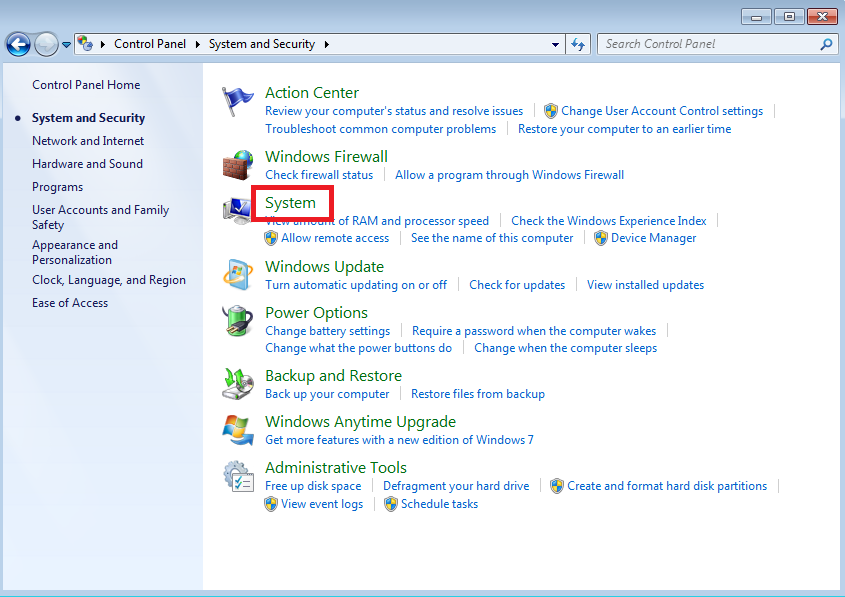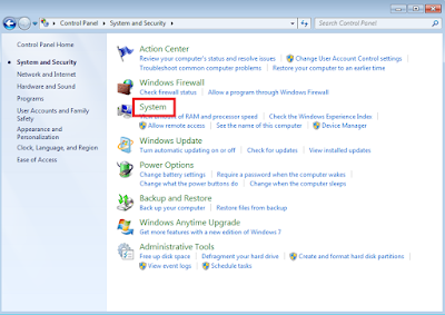 Masuk ke System and Security