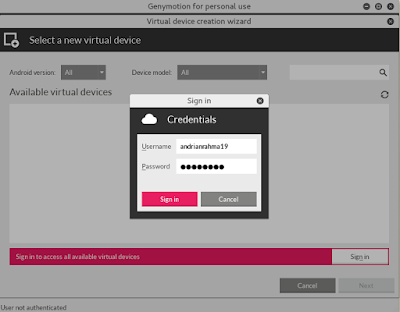 Selanjutnya, login di situs genymotion dengan akun yang sudah kalian buat tadi