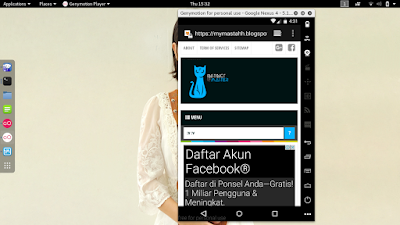 Tampilan Google Nexus yang dijalankan genymotion di Kali Linux saya