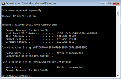 Untuk mengeceknya, ketikkan perintah ipconfig di cmd