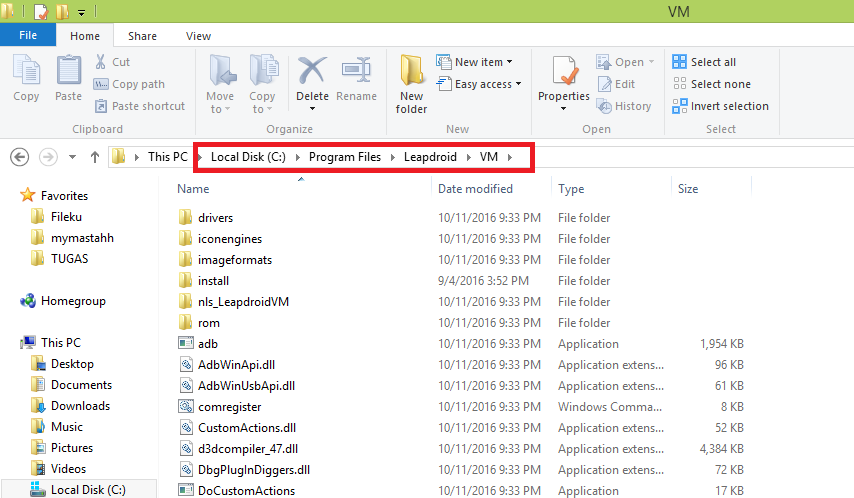 Buka direktori installasi leapdroid