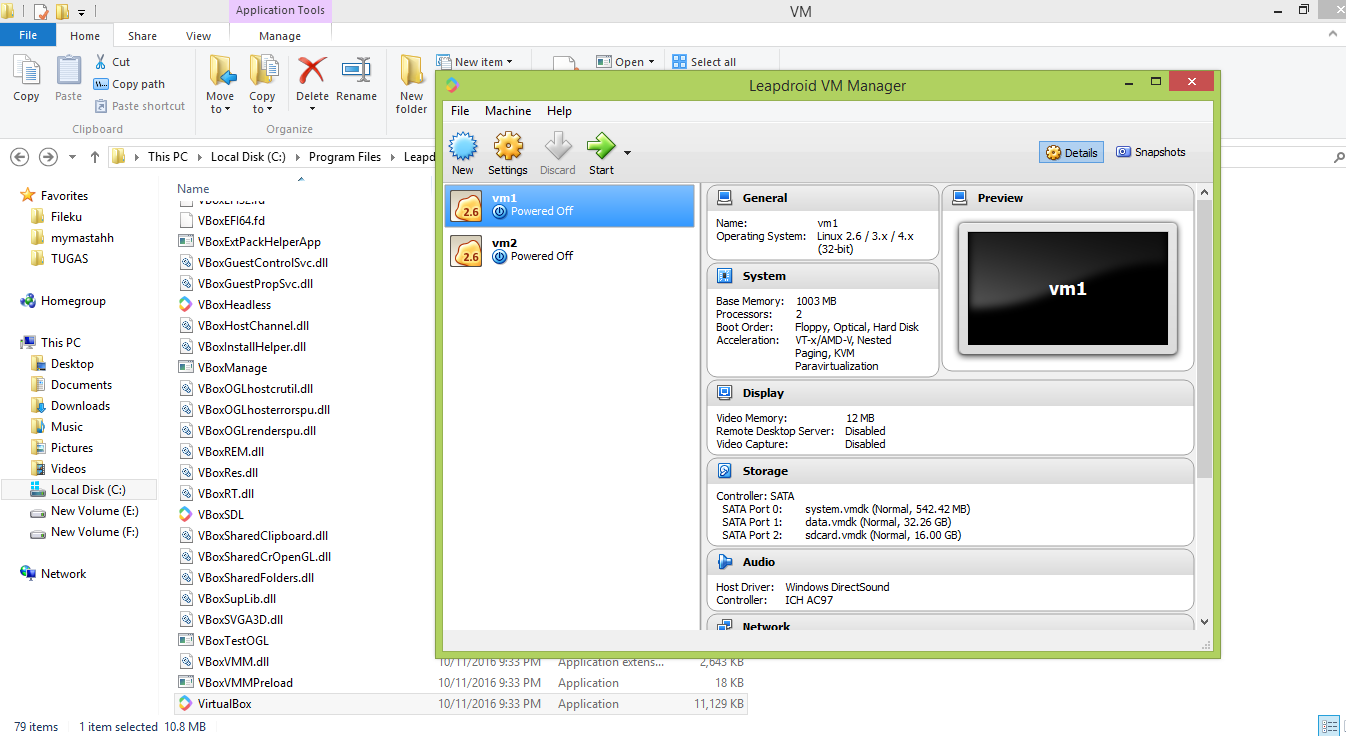Secara default, leapdroid yang terinstall di komputer kalian telah menyediakan 2 virtual mesin.