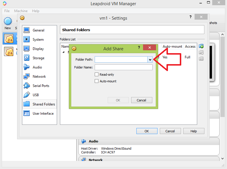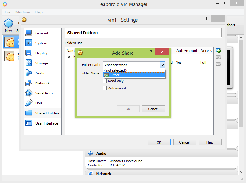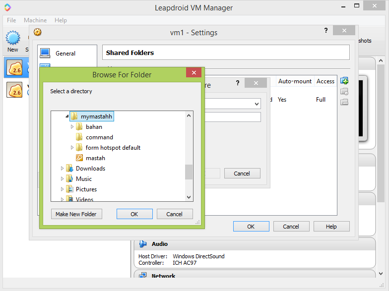 Kemudian arahkan ke folder di windows yang ingin kalian share ke leapdroid
