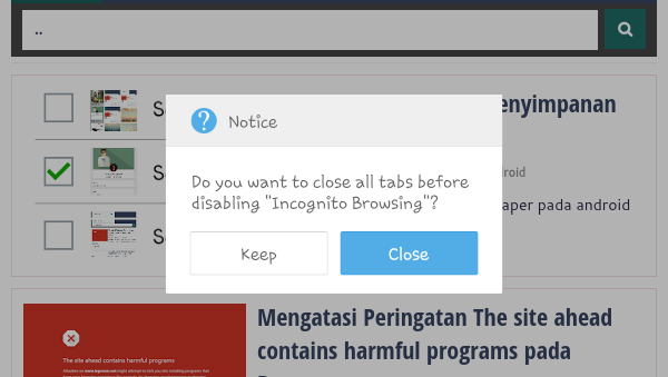 Cara browsing di android tanpa menyimpan history atau riwayat dengan fitur Incognito UC Browser