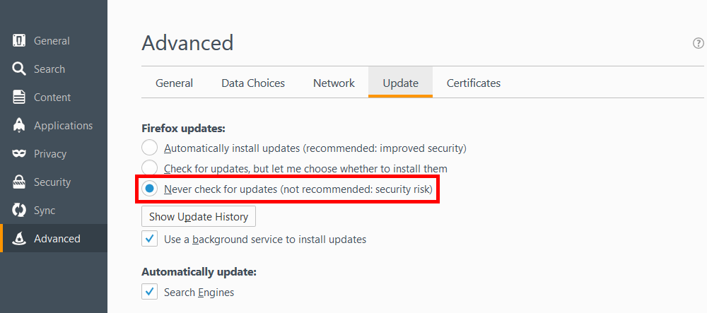 Menonaktifkan Pembaruan Otomatis Mozilla Firefox
