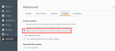 Cara mendisable fitur update otomatis pada browser mozilla firefox