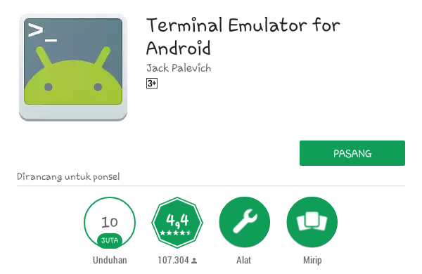 Pertama, download dan install terlebih dahulu apk Terminal Emulator for Android.
