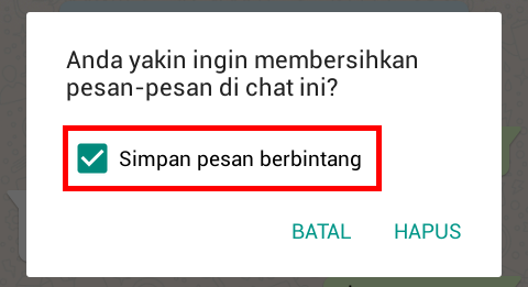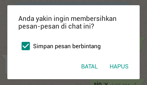 Jika sobat ingin menghapus seluruh chat, hilangkan saja centang pada kotak Simpan pesan berbintang