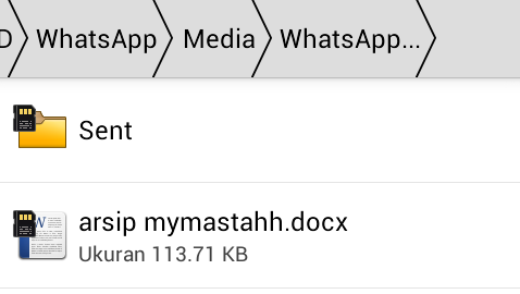 Melihat tempat menaruh file word, file powerpoint, file txt yang terunduh di WhatsApp