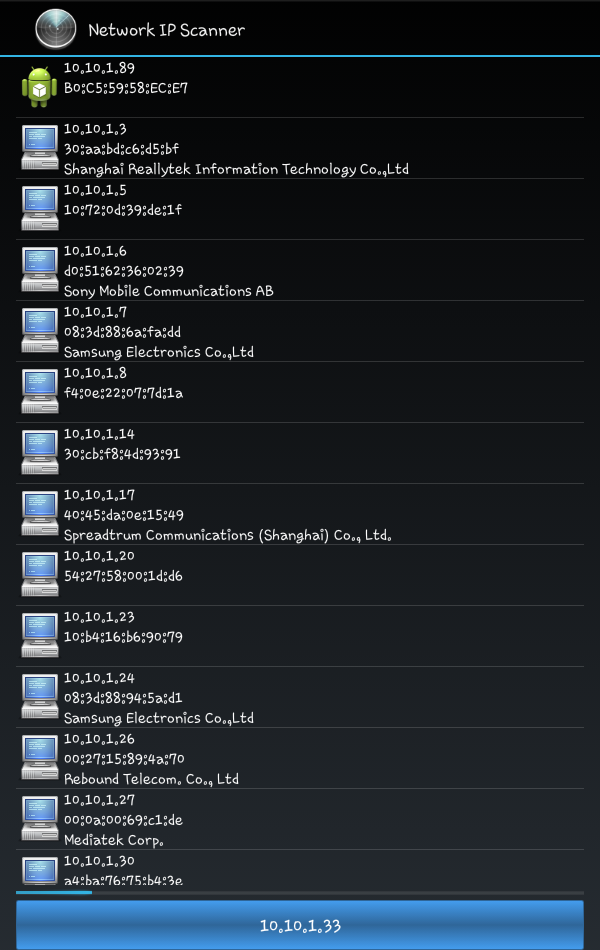 Cara mengetahui ip dan mac address handphone lain di area wifi pada android dengan aplikasi Network IP Scanner