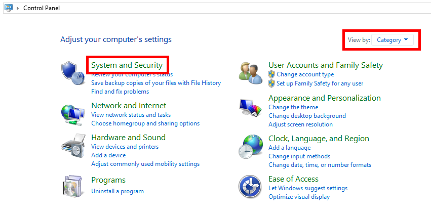 Kemudian pilih menu System and Security