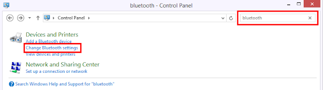 Pertama buka Control Panel. Kemudian ketik bluetooth pada kolom pencarian.