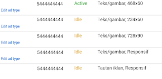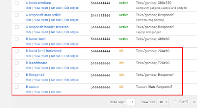 Unit unit iklan yang hilang, statusnya berubah menjadi idle/siaga, status akan kembali active jika kalian memasangnya lagi pada website