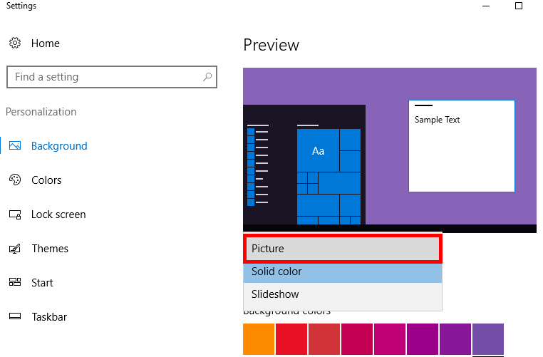 Ubah pilihan opsi Background menjadi Picture