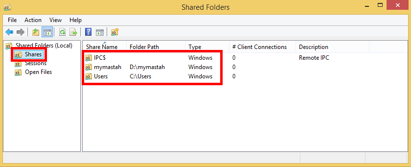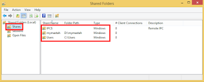 Untuk melihat daftar file ataupun folder yang sudah di sharing pada komputer sobat, bisa dilihat pada opsi menu Shares