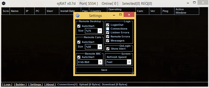 Pertama, silahkan download terlebih dahulu panel njRAT disini http://www.connect-trojan.net/2013/12/njrat-v0.7d-by-njq8.html . Klik tombol berbentuk disk