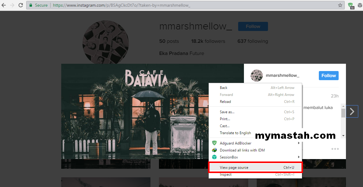 Cara Download Foto Instagram di Web Browser PC dengan View Page Source