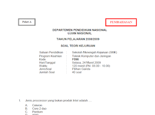 Download file pdf soal ujian nasional beserta kunci jawaban kejuruan TKJ tahun 2008/2009 Paket A
