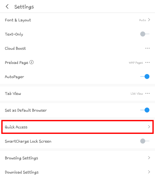 Kemudian nyalakan fitur quick access dengan menggeser tombol pemintas