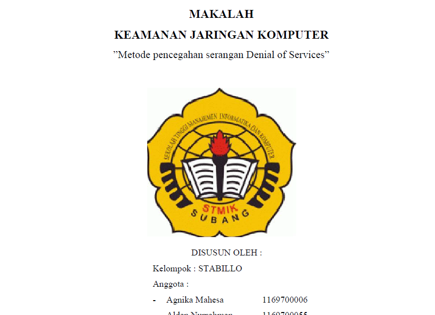 Download makalah keamanan jaringan latar belakang Denial of Service oleh mahasiswa teknik komputer dan jaringan STMIK Subang