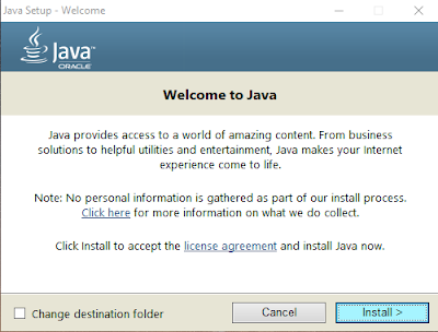 Jika sudah, mari kita install terlebih dahulu JRE Java nya