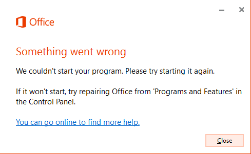 Mengatasi Microsoft Office 2016 error setiap kali dibuka “Something went wrong, we couldn’t start your program. Please try starting it again”