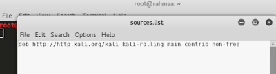 Pertama ubah sourceslist repositori Kali Linux. Sumber repo saya ambil dari situs resminya