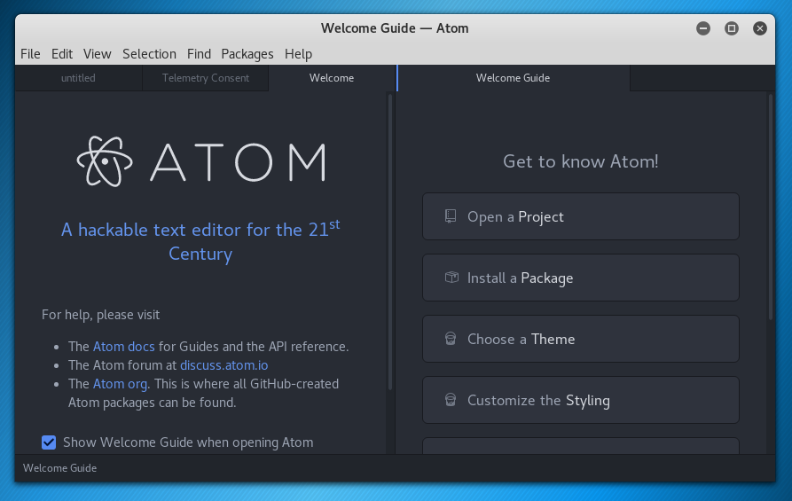 Atom merupakan software text editor berlicensi open source, tersedia untuk beberapa macam sistem operasi, mulai dari Windows, Linux, dan juga Mac OS. Karena open source, atom ini saya pastikan sudah sangat powerfull untuk kegiatan coding sobat. Atau akan lebih bagus jika ikut berkontribusi terhadap perkembangan atom. Selain itu, ada beberapa fitur menarik yang dimilikinya (terintegrasi git, tersedia banyak theme dan plugin, terdapat fitur package manager).