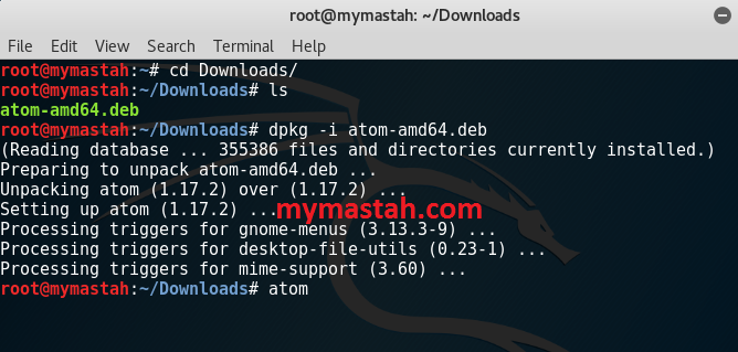 Buka terminal, masuk ke direktori dimana atom yang sudah terdownload tadi diletakkan