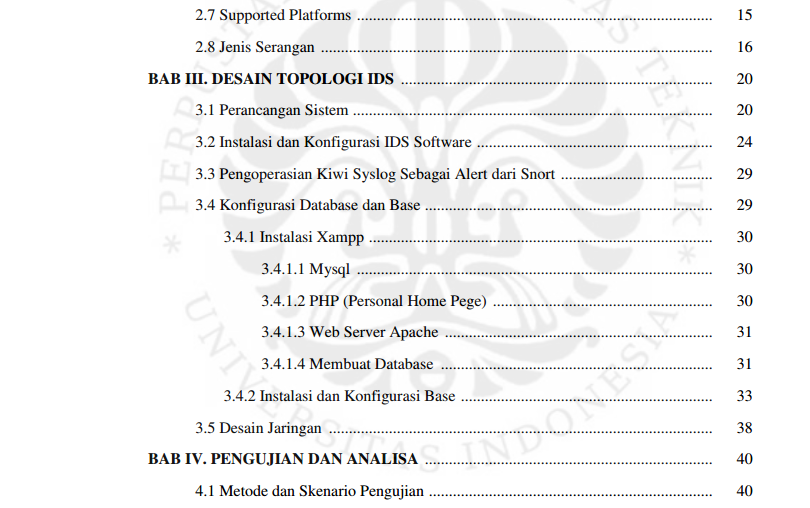 Sehingga suatu sistem keamanan pada jaringan menjadi salah satu aspek yang penting untuk diperhatikan dari sebuah sistem informasi. Oleh karena itu untuk mendapatkan sebuah keamanan jaringan maka diperlukan suatu tools yang dapat mendeteksi adanya serangan di dalam jaringan. banyaknya tools ini, maka dapat dibandingkan antara sistem yang hanya dapat mendeteksi dengan sistem yang dapat melakukan tindakan juga. Sistem yang hanya mendeteksi ini akan diimplementasikan dengan menggunakan aplikasi IDS yaitu Snort. Sistem IDS ini yaitu sistem yang mampu memberikan alerting maupun log apabila terjadi serangan di dalam jaringan, selain itu IDS ini juga mampu memonitoring serangan melalui interface web.