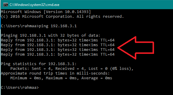 Ketikkan ping 192.168.3.1(IP Address milik Debiannya). Bisa dilihat, komputer asli berhasil melakukan ping dengan lancar.