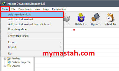 Buka IDM, klik menu Task, lalu pilih opsi Add new download