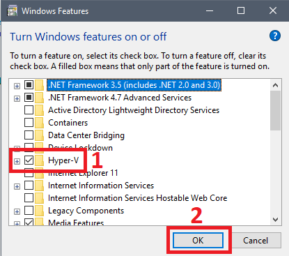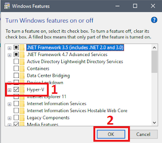 Nah jika fitur Hyper-V sobat dalam kondisi aktif (terdapat centang) merupakan penyebab kernel crash dan membuat komputer bluee screen. Silahkan hilangkan centang pada fitur Hyper-V, lalu klik OK