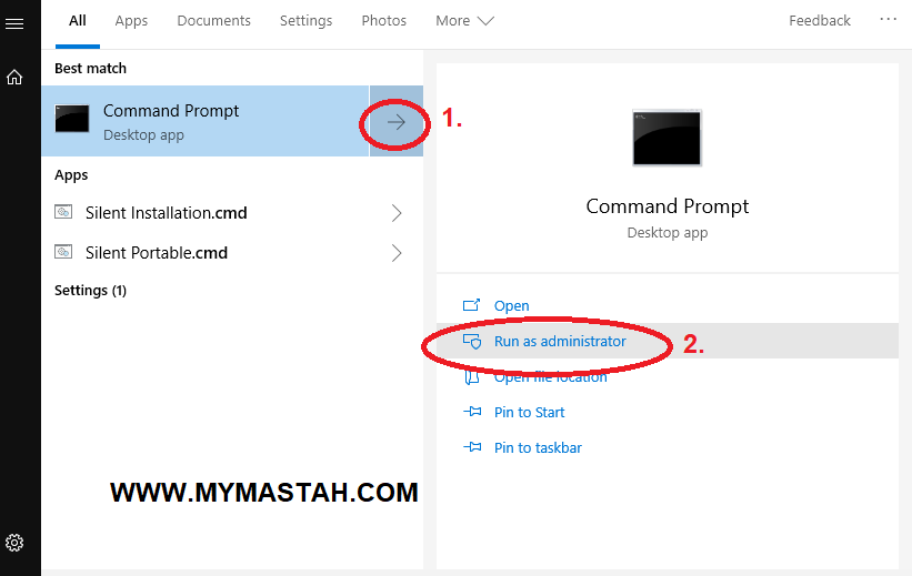 - Pertama kali ini saya mengggunakan aplikasi bawaan windows notepad dan cmd, Buka Menu Start Marilah kalian ketik kata cmd dan cari kata di sebelahnya Run as administrator lalu klik.