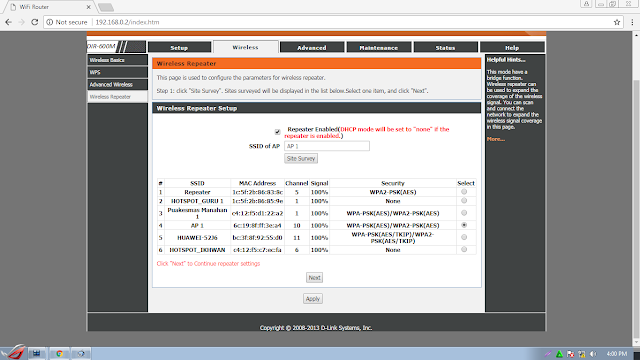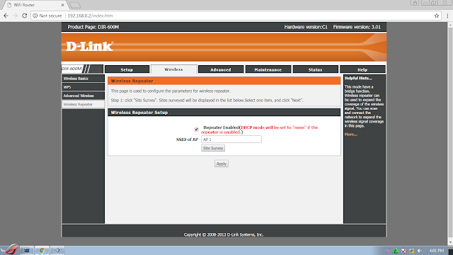 Turotial Membuat Jaringan Wireless Repeater pada D-Link DIR-600M