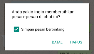 Jika sobat ingin menghapus seluruh chat, hilangkan saja centang pada kotak Simpan pesan berbintang